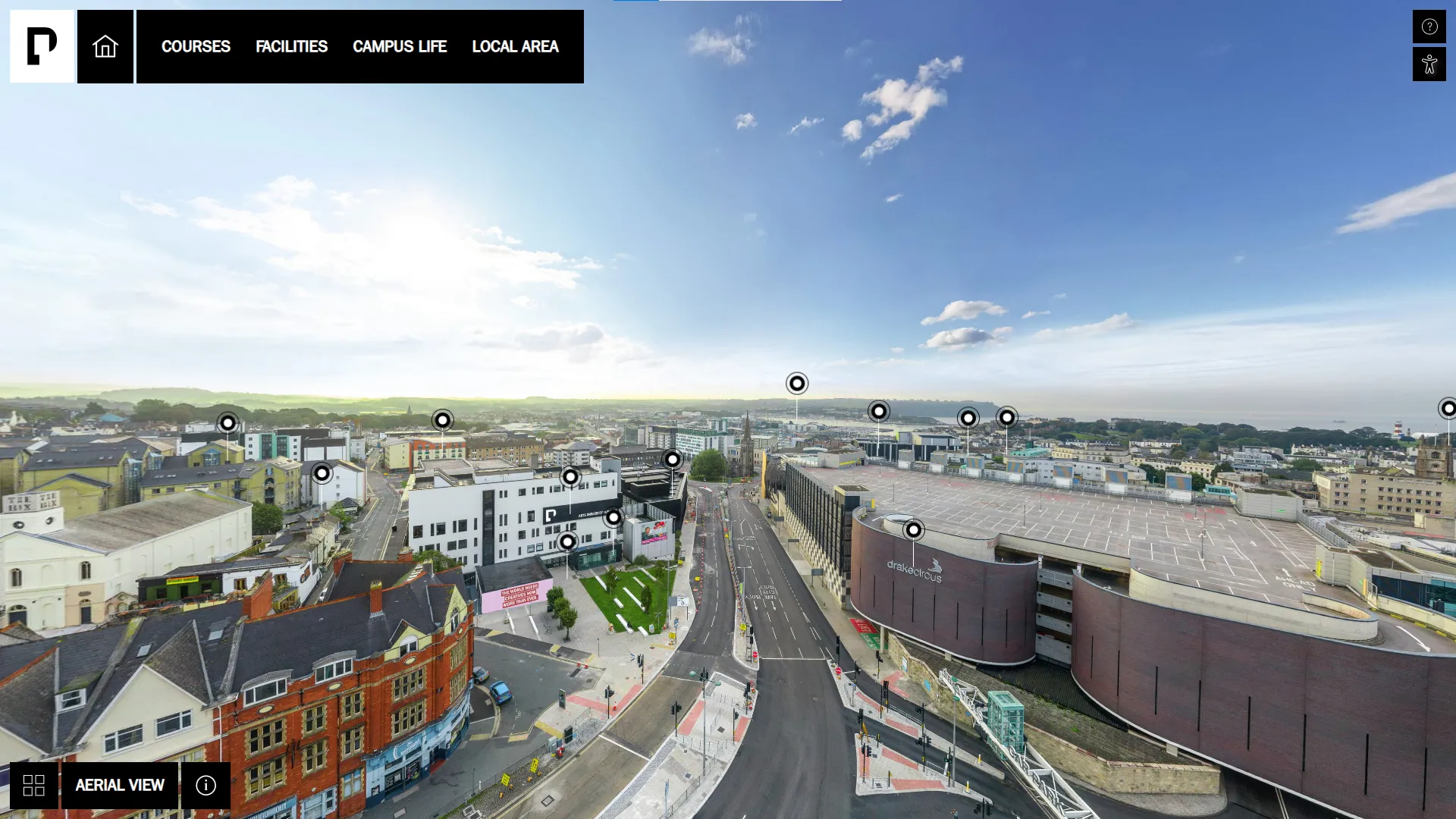 Amongst a standard features and processes we worked with Arts University Plymouth to implement a range of bespoke components that makes this virtual tour stand out in true form.